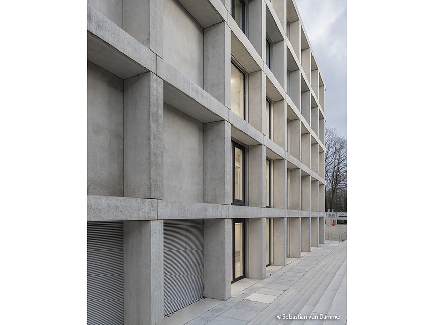Notons que Kaan Architecten a une expertise toute particulière dans le domaine du béton, avec des projets comme le Crématorium Siesegem à Alost, l’Institut des Sciences Moléculaires d’Orsay, lauréat du trophée béton en 2019, .. L’agence a par ailleurs développé CIRCLE, un module de construction en béton optimisé, développé en collaboration avec l’industrie. Le but de ces modules préfabriqué est de pouvoir construire plus rapidement, de manière plus durable et à des coûts mieux maitrises. Le béton utilisé est 100 % recyclable, CIRCLE s’inscrit dans une démarche respectueuse de l’environnement.